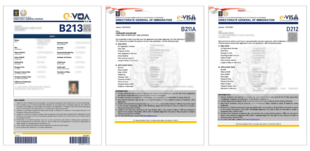 - E-Visa On Arrival (B1): Perfekt für Kurzzeitreisende, die eine schnelle und einfache Einreise nach Bali suchen. Es ist 30 Tage gültig und kann einmal um weitere 30 Tage verlängert werden.